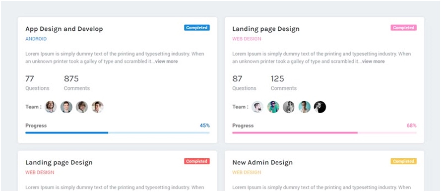 - Progress % by team